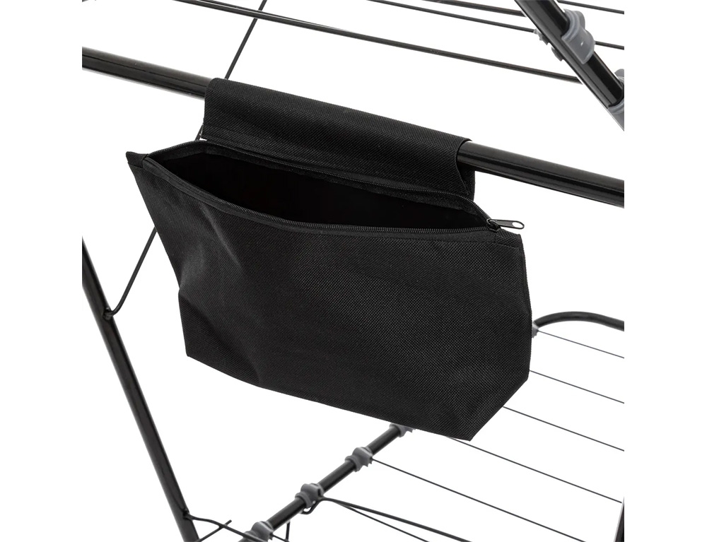 Πτυσσόμενη απλώστρα ρούχων δαπέδου κατασκευασμένη από ανοξείδωτο χάλυβα με μέγιστο μήκος απλώματος ρούχων που φτάνει τα 18 μέτρα. Κατάλληλη για εσωτερικούς και εξωτερικούς χώρους.