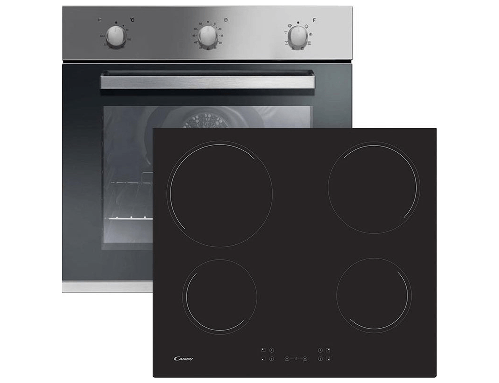 Σετ εντοιχιζόμενος φούρνος Candy FCP602X με χωρητικότητα 65L, ενεργειακή κλάση Α+ και κεραμική εστία Candy CH64CCB με 4 ζώνες μαγειρέματος