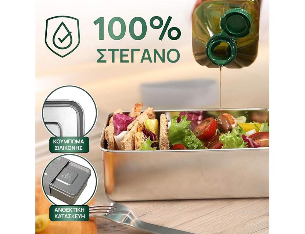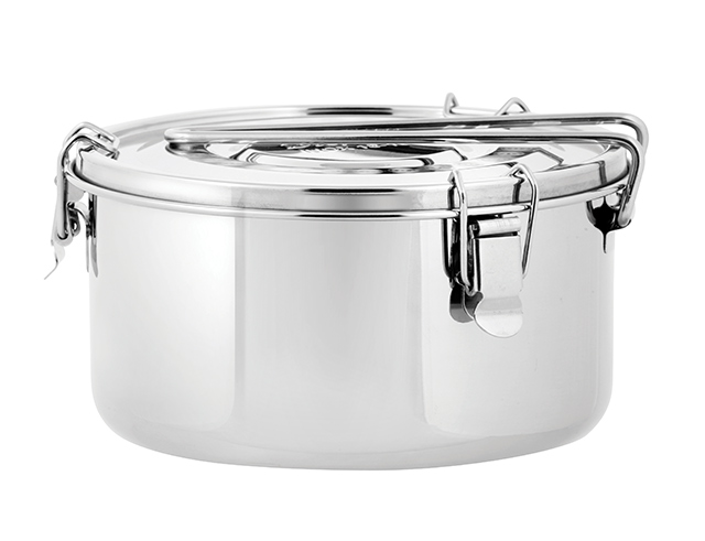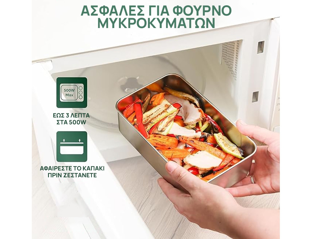 Μεταφέρετε το φαγητό σας με το ανοξείδωτο φαγητοδοχείο μεταφοράς φαγητού με σιλικονούχο λάστιχο. Το συγκεκριμένο σκεύος είναι κατάλληλο για πλυντήριο πιάτων ή ψυγείο και διαθέτει 3 κλιπς για ασφαλές κλείσιμο. Μπορεί να μπει σε φουρνάκι (όχι μικροκυμάτων) και θερμοθάλαμο. Συνιστάται χωρίς το καπάκι για μεγαλύτερη διάρκεια ζωής του λάστιχου στεγανοποίησης.