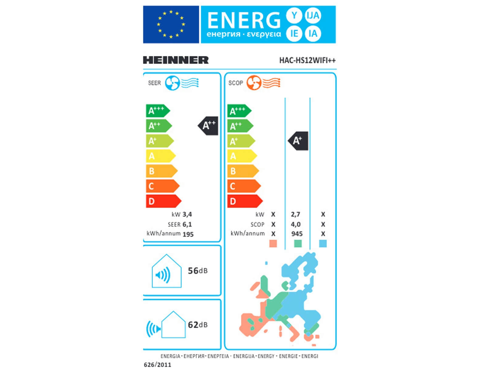 Κλιματιστικό Inverter Heinner HAC-HS12WIFI++ με Wi-Fi, Απόδοση 12.000 Btu και Ενεργειακή Κλάση Α++ / Α+