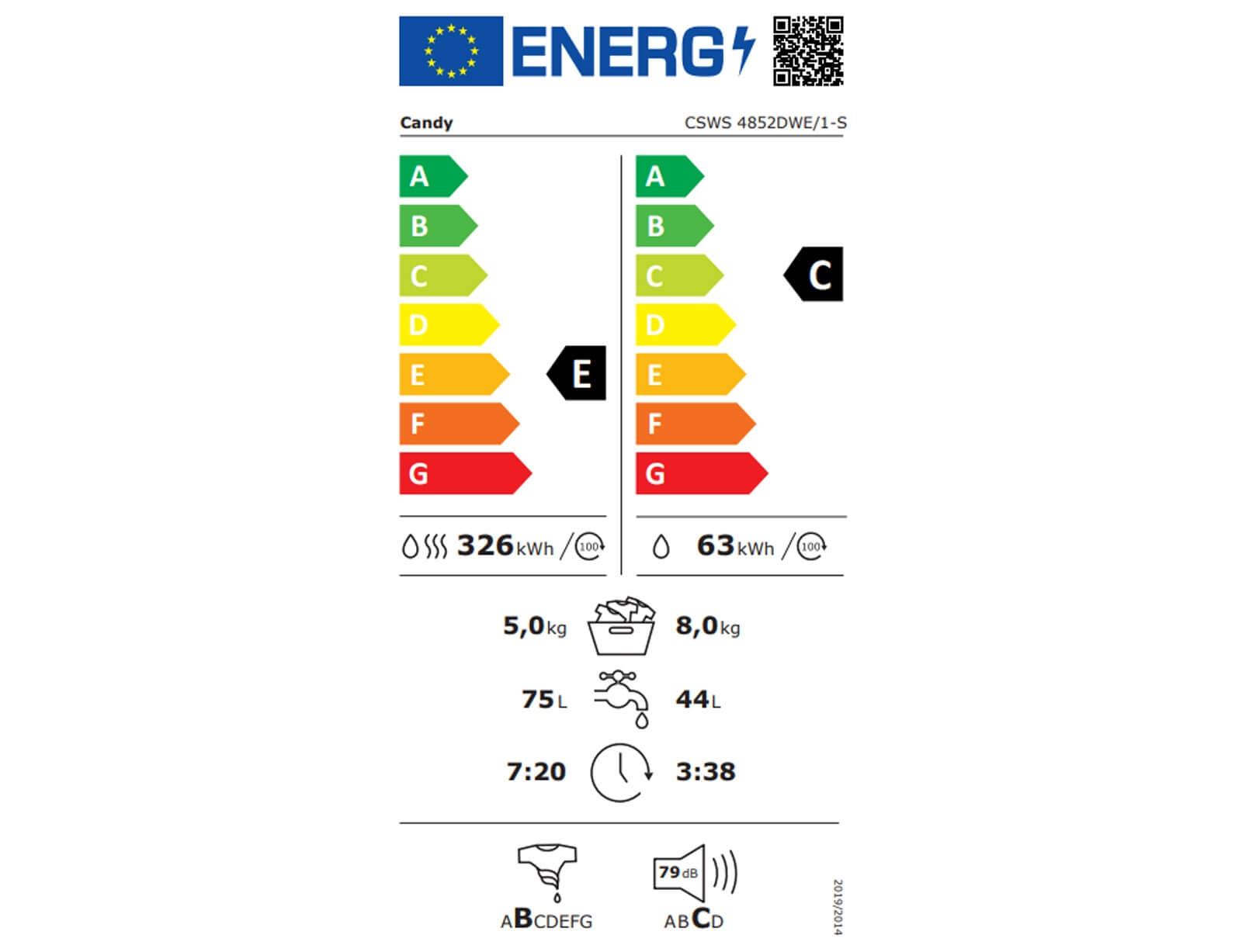 Πλυντήριο Ρούχων (8Kg) + Στεγνωτήριο (5Kg) Ατμού Candy CSWS 4852DWE/1-S Με Wi-Fi, NFC, 1400Rpm και ενεργειακή Κλάση C & E