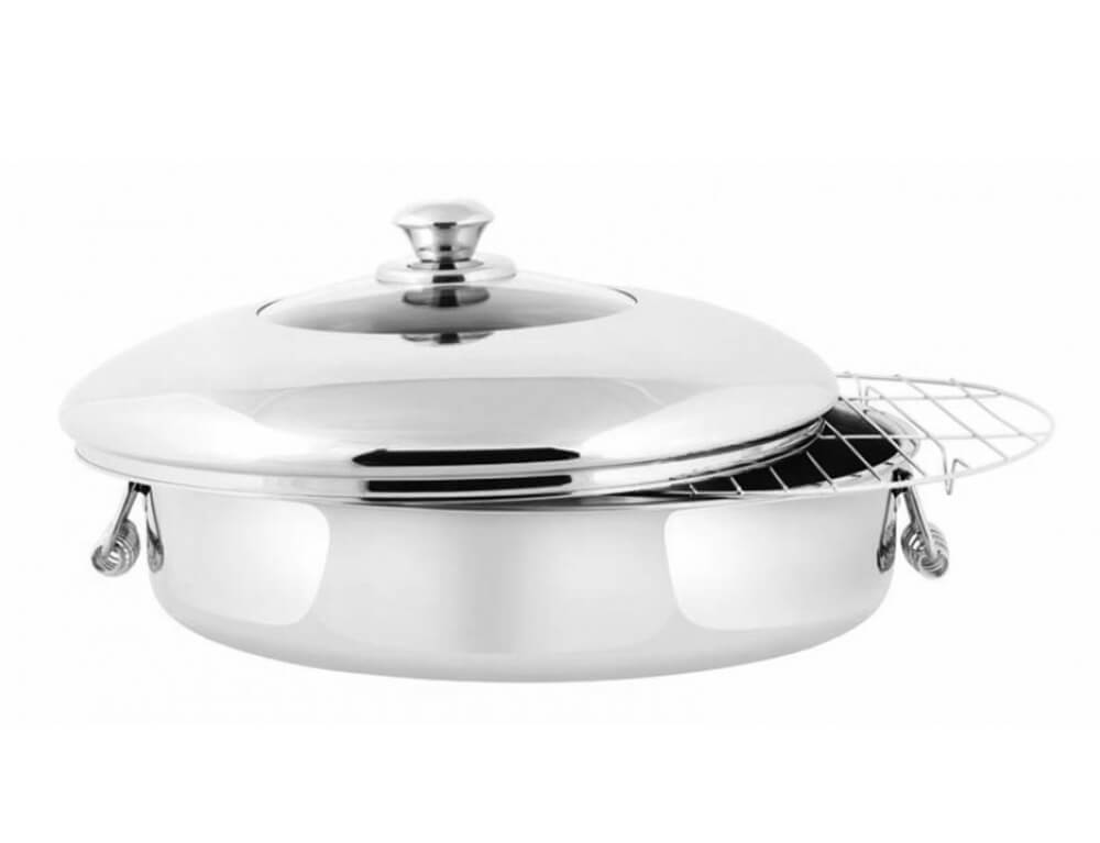 Ανοξείδωτη στρογγυλή γάστρα ταψί Βιομάρ 380010 με διάμετρο 36cm, χερούλια, καπάκι και ανοξείδωτη σχάρα