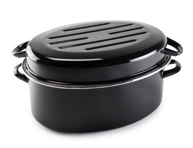Ανοξείδωτη στρογγυλή γάστρα ταψί Βιομάρ 38009 με διάμετρο 38cm και καπάκι