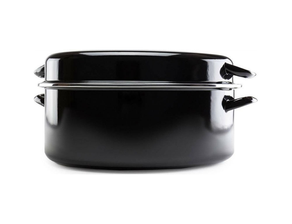Ανοξείδωτο στρογγυλό βαθύ ταψί Βιομάρ 830034 με διάμετρο 34cm, χερούλια, καπάκι και ανοξείδωτη σχάρα