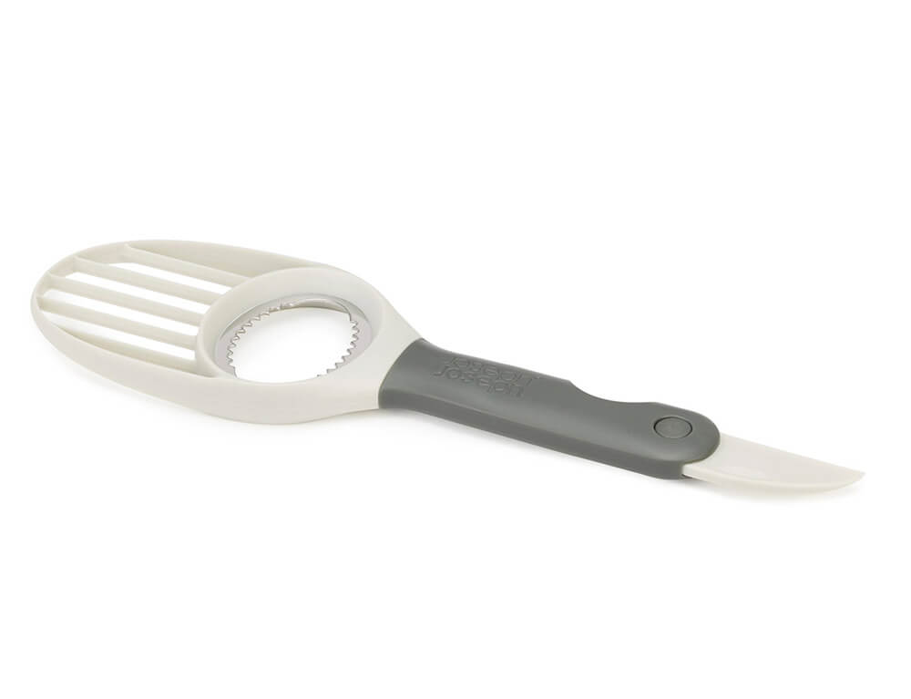 O καθαριστής αβοκάντο της Joseph Joseph περιλαμβάνει ότι χρειάζεστε για το αποτελεσματικό καθάρισμα του αβοκάντο. Είναι 3 σε 1 καθώς έχει εργαλείο αφαίρεσης κουκουτσιού, εργαλείο τεμαχισμού του αβοκάντο και μαχαίρι καθαρισμού φλούδας και είναι και κατάλληλο για πλυντήριο πιάτων.