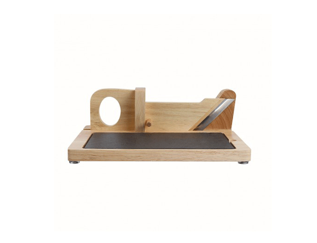 Γκιλοτίνα κοπής αλλαντικών Livoo MEC125 με λαβή για να μπορείτε να κόβετε με μεγάλη ευκολία τα αλλαντικά σας. Είναι κατασκευασμένη από ξύλο καουτσούκ για μεγαλύτερη ανθεκτικότητα.