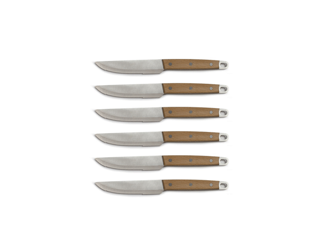 Σετ 6 μαχαιριών μπριζόλας Livoo με ξύλινη λαβή και λεπίδες από οδοντωτό ανοξείδωτο ατσάλι.