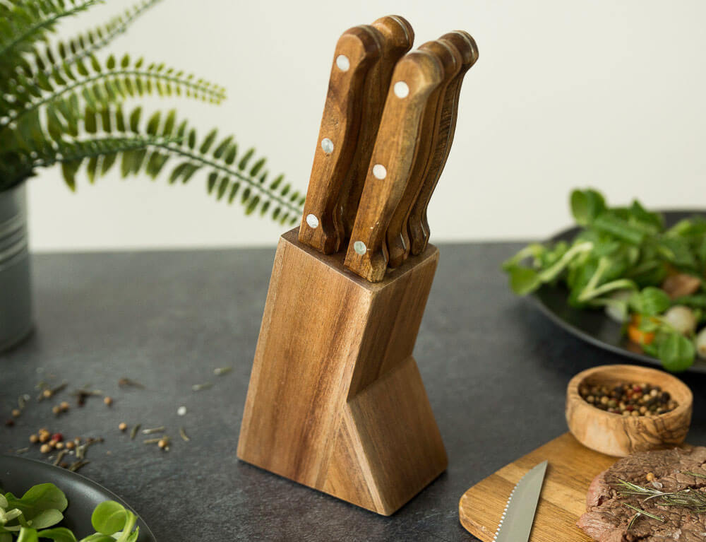 Σετ 6 μαχαίρια μπριζόλας Livoo με ξύλινη βάση.