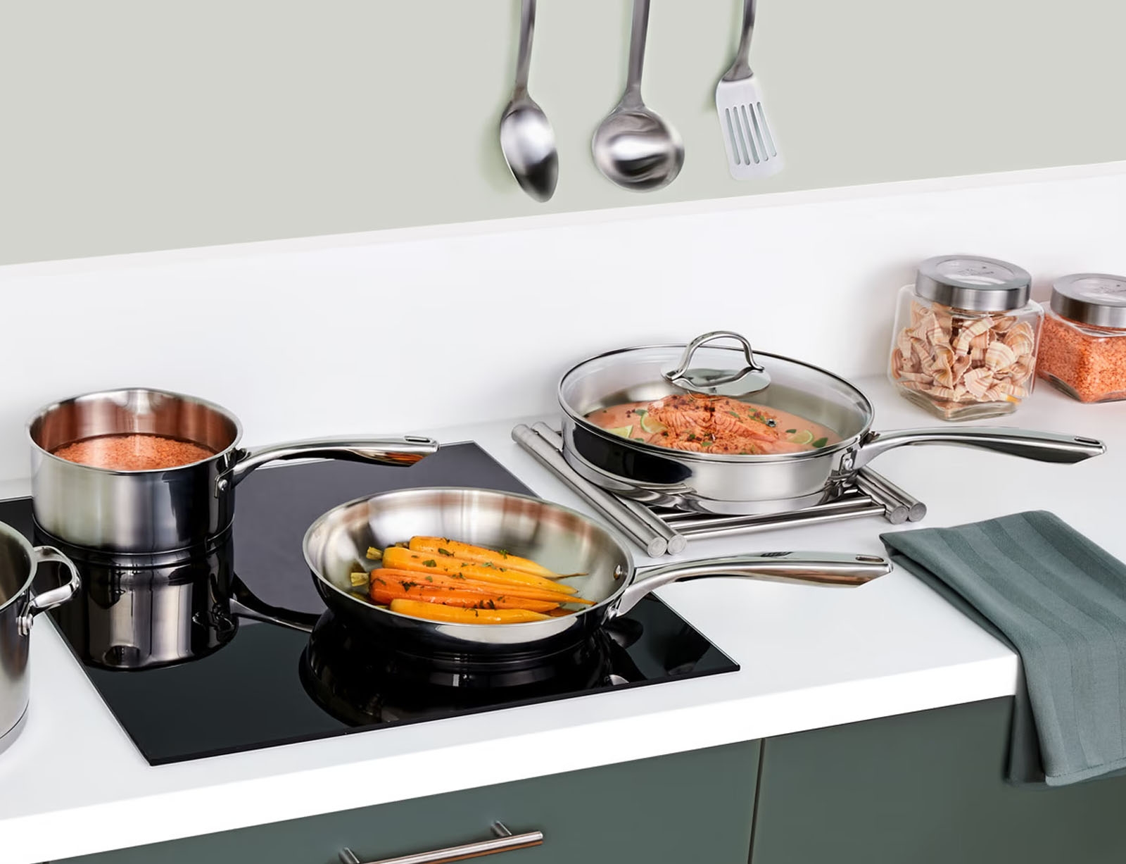 Τηγάνι sauté 5five με φριτέζα, σπάτουλα και διάμετρο 28cm - Olive Green