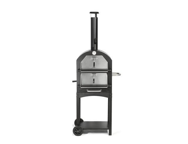 - Στο κάτω μέρος είναι η ανάφλεξη του φούρνου με κάρβουνο ή ξύλο, ενώ το πάνω μέρος με τη σχάρα σας επιτρέπει να μαγειρεύετε πίτσες, λαχανικά ή κρέατα.