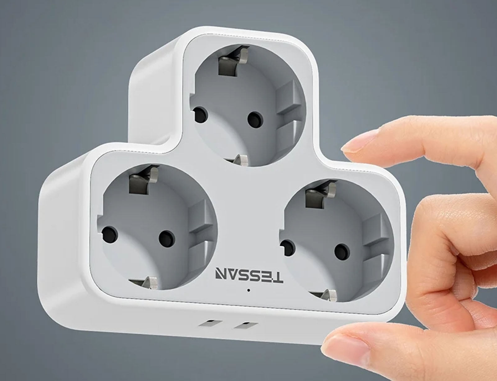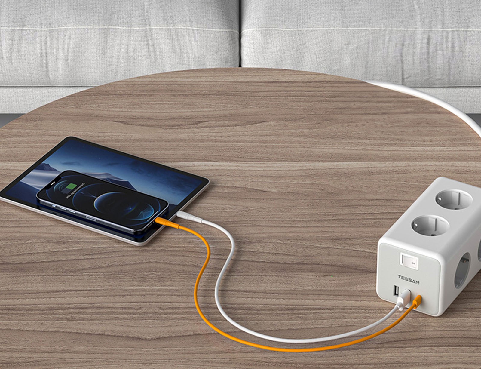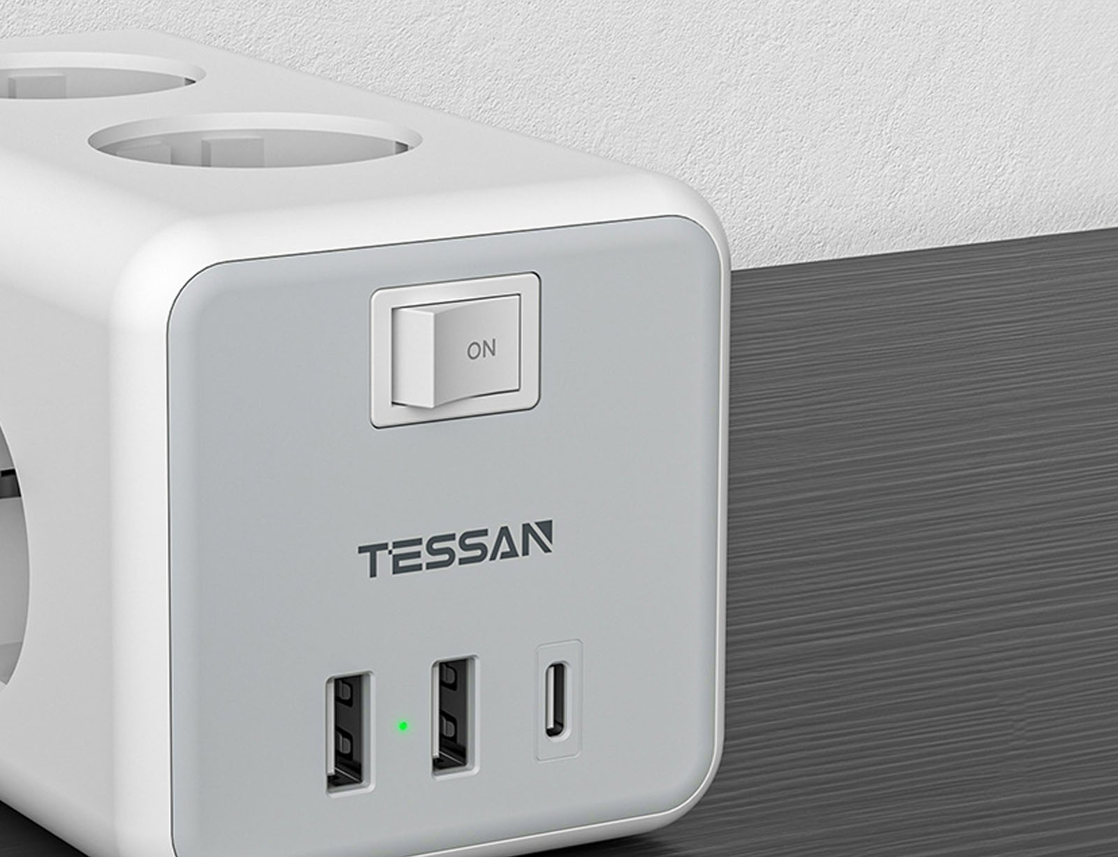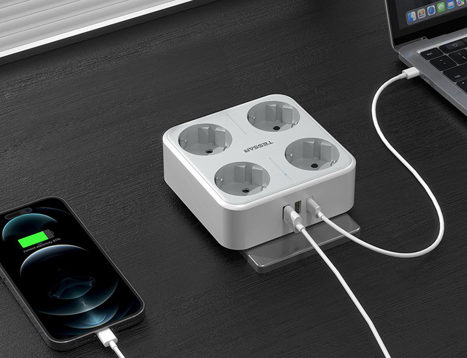 Πολύπριζο Tessan TS-301-C-GR με διακόπτη On/Off - 3x Schuko, 2x USB-A, 1x USB-C - Καλώδιο 2m - Λευκό