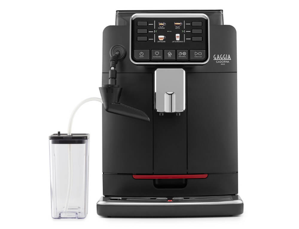 Η νέα Cadorna Milk είναι μία υπέρ αυτόματη μηχανή Espresso της Gaggia με ενσωματωμένο μύλο άλεσης, κατασκευασμένη στην Ιταλία. Η λειτουργία και ο προγραμματισμός της μηχανής πραγματοποιούνται μέσω οθόνης TFT και πλήκτρων για τη δυνατότητα παραμετροποίησης όλων των ρυθμίσεων εύκολα και γρήγορα. Προσαρμοσμένη στις ανάγκες του χρήστη, καθώς είναι εύκολη και διαδραστική, καθοδηγώντας τον χρήστη με μεγάλη λεπτομέρεια στην λειτουργία, τη ρύθμιση και τον καθαρισμό της μηχανής. Ο μύλος άλεσης διαθέτει κεραμικά μαχαίρια τα οποία διασφαλίζουν αθόρυβη άλεση, μακροχρόνια και υψηλή απόδοση για εκχύλιση των καλύτερων αρωμάτων του καφέ. Δυνατότητα χρήσης μεγάλου ποτηριού. Η απόσταση την σχάρας από τον εκροέα 14.5cm επιτρέπει την χρήση μεγάλου ποτηριού και η συρόμενη σχάρα σε απόσταση 7cm από τον εκροέα χρησιμοποιείται για σερβίρισμα παραδοσιακού espresso. Νέο σύστημα CUPPinCUP με πατενταρισμένο κυκλωνικό θάλαμο αυτόματης παρασκευής πλούσιου αφρογάλατος και ρύγχος που σερβίρει το αφρόγαλα στο φλιτζάνι. Γρήγορη και εύκολη παρασκευή cappuccino χωρίς να μετακινείτε το φλιτζάνι ή το ποτήρι.