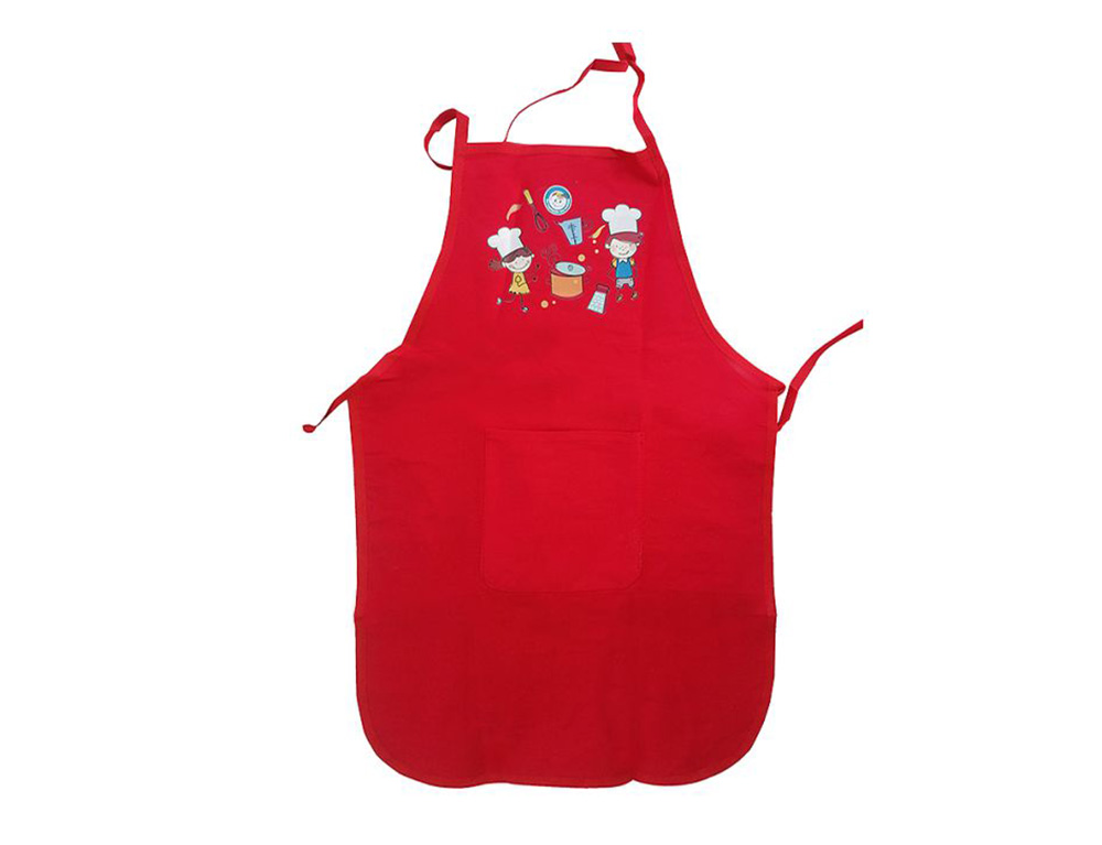 Ολόσωμη υφασμάτινη παιδική ποδιά απο 100% βαμβακερό ύφασμα, σε κόκκινο χρώμα με τσέπη. Διαστάσεις: Υψος 60 εκ., πλάτος 40 εκ.