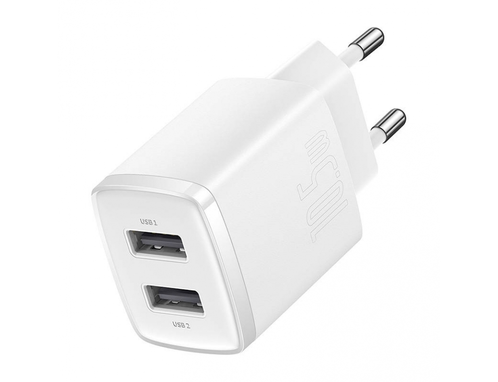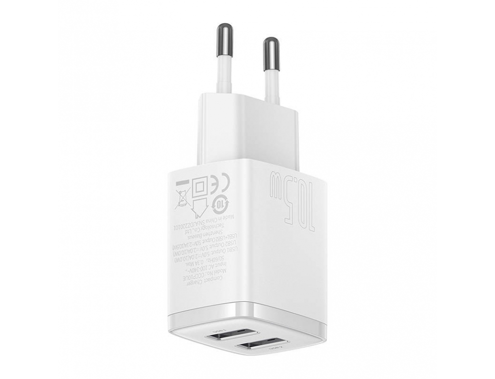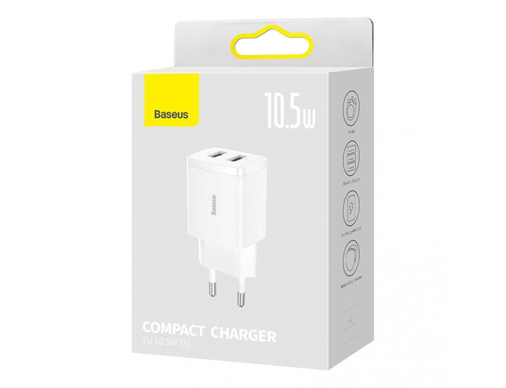 Φορτιστής Baseus Compact Quick Charger - 2x USB - 10.5W - Λευκό
