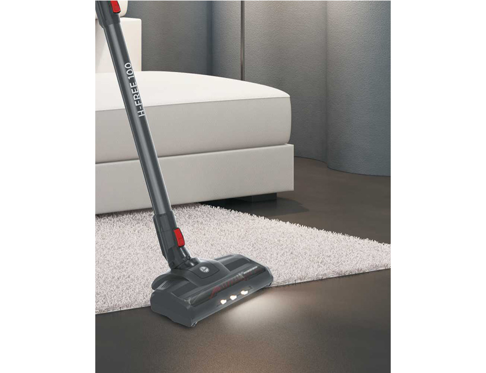 Η συστοιχία ισχυρών λυχνιών LED, στο μπορστινό μέρος του πέλματος, φωτίζει τα σκοτεινά σημεία, όπως κάτω από έπιπλα, για να μην σας ξεφεύγει τίποτα.