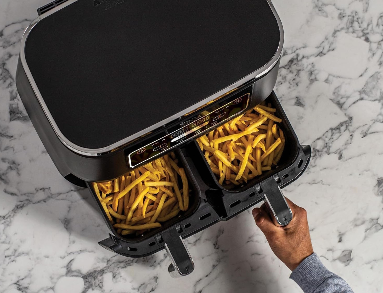 Η φριτέζα ζεστού αέρα επωφελείται επίσης από τη λειτουργία του φούρνου, έτσι ώστε τα τρόφιμα να μπορούν να μαγειρεύονται σε δίσκους, όχι μόνο στο τυπικό καλάθι. Ο ζεστός αέρας που κυκλοφορεί γρήγορα, απλώνεται ομοιόμορφα σε όλο το διαμέρισμα της συσκευής και σας επιτρέπει να μαγειρεύετε γρήγορα και χωρίς κόπο μια μεγάλη γκάμα συνταγών: σνακ, κρέας, λαχανικά και άλλα.