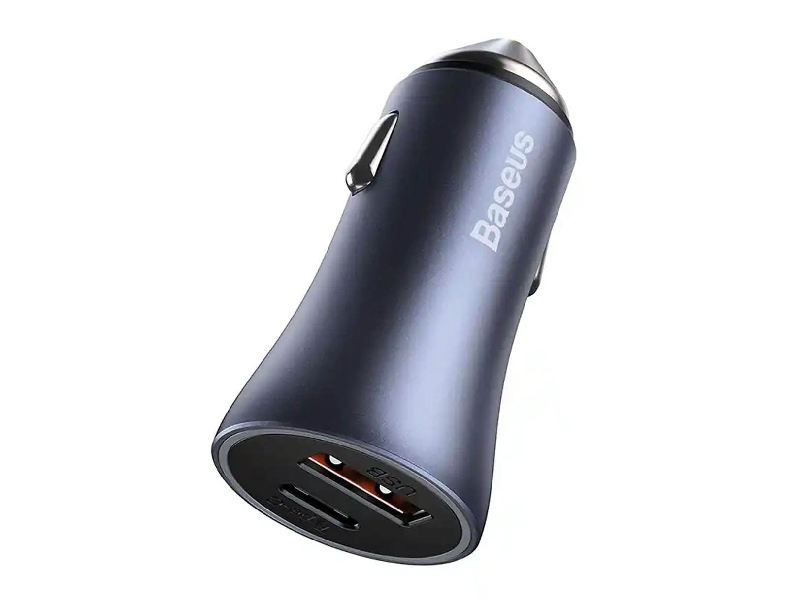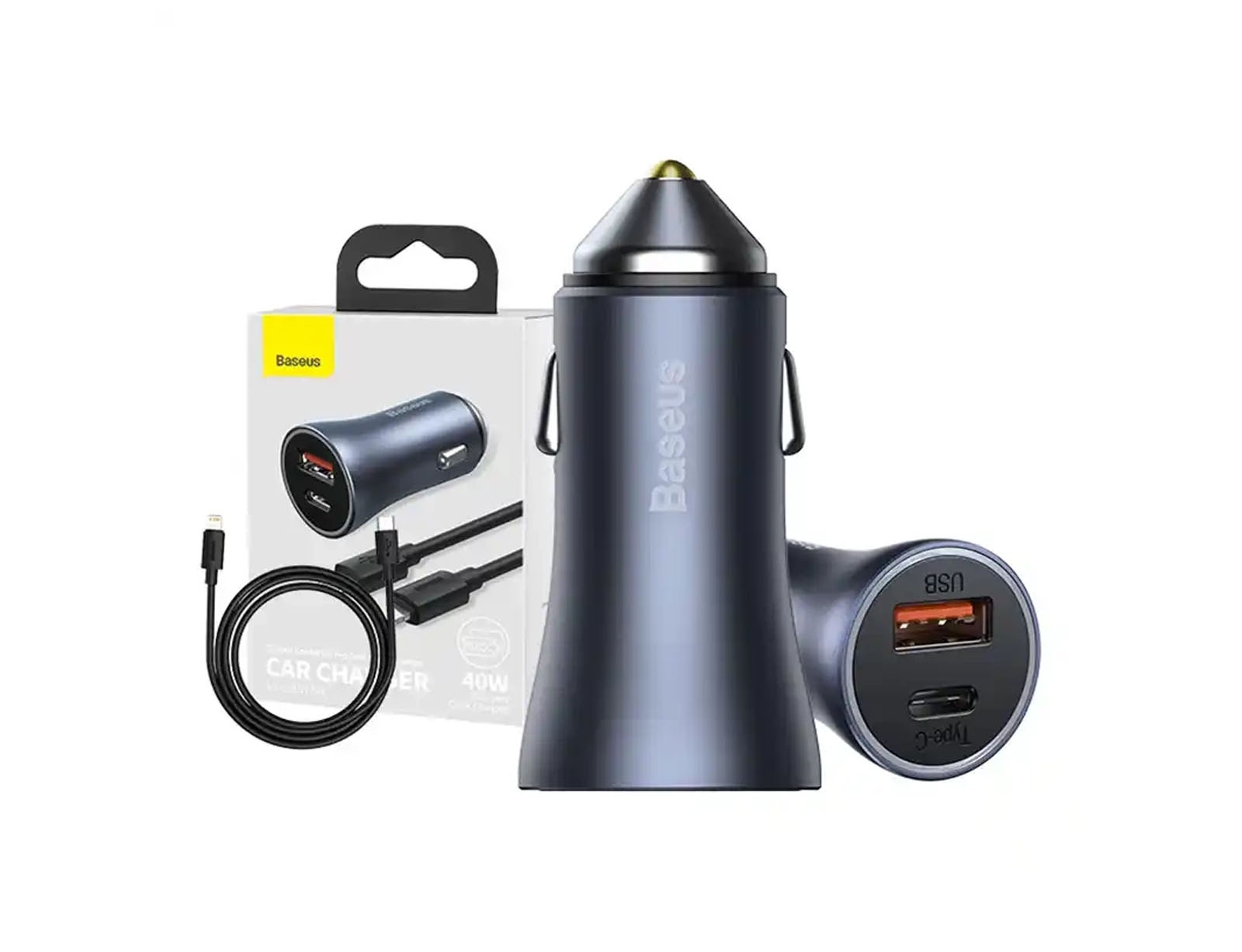 Φορτιστής Αυτοκινήτου Baseus Golden Contactor Pro με Καλώδιο USB-C σε Lightning μήκους 1m - 40W - 1x USB-A, 1x USB-C - Γκρι/Μαύρο
