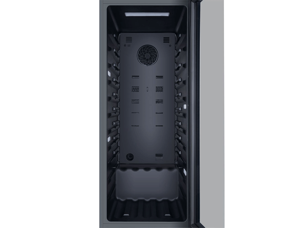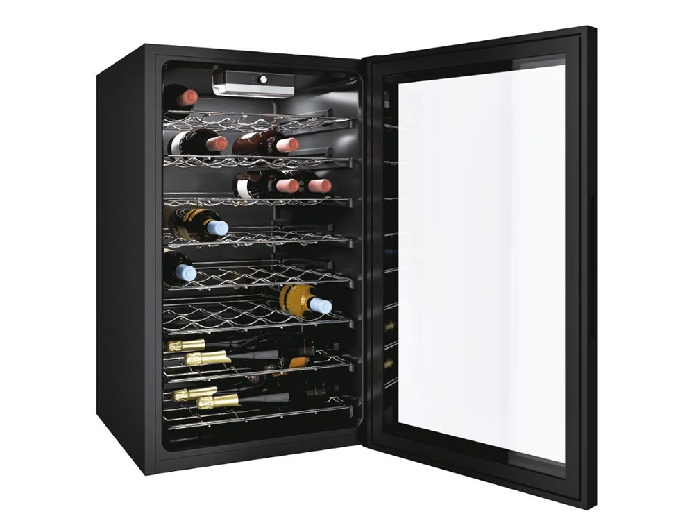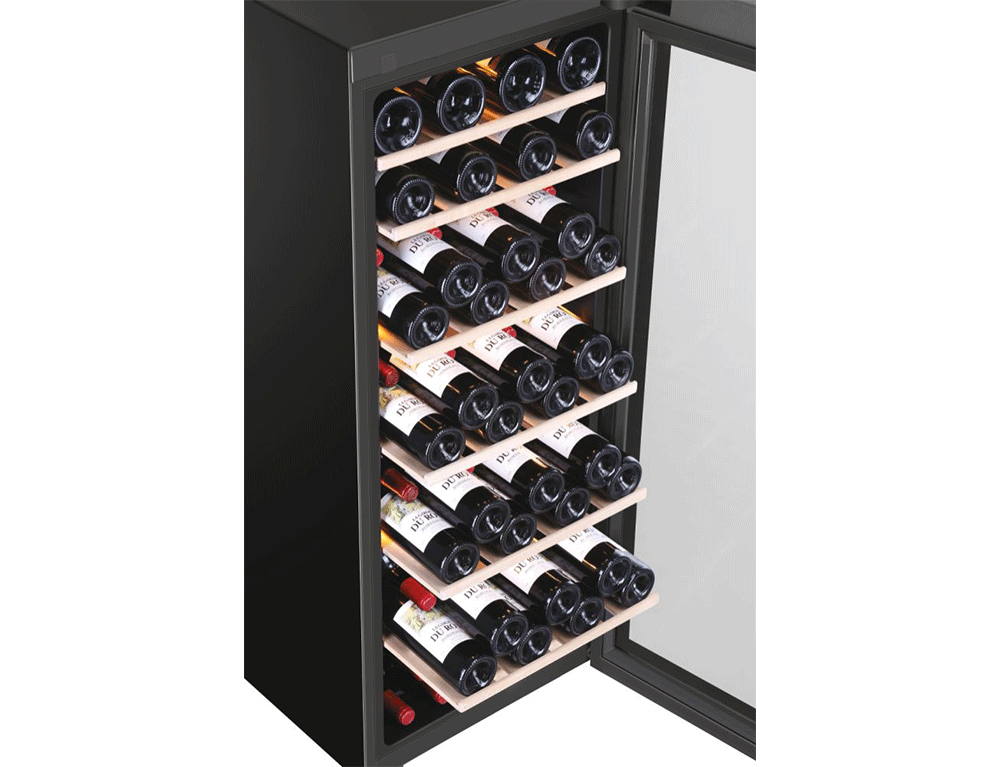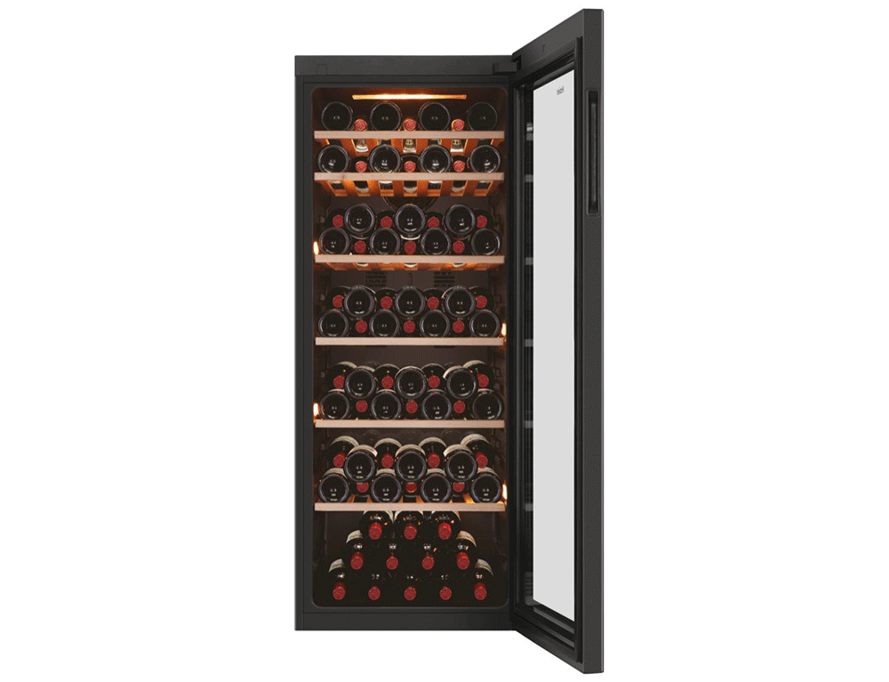 Σύστημα φωτισμού 3D LED που σας επιτρέπει να βλέπετε τέλεια το εσωτερικό. Ολόκληρο το ψυγείο κρασιού φωτίζεται από την κορυφή και τα πλαϊνά, γεγονός που δημιουργεί ένα ιδιαίτερο αποτέλεσμα.