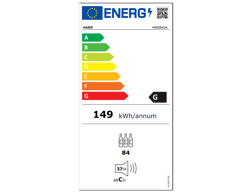 Συντηρητής κρασιού Haier Wine Bank 50 Series 5 HWS84GA με ενεργειακή κλάση G και χωρητικότητα 84 φιάλες
