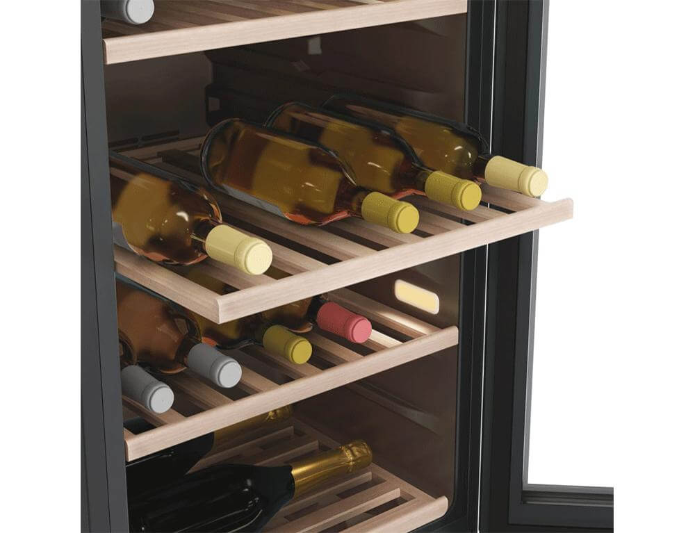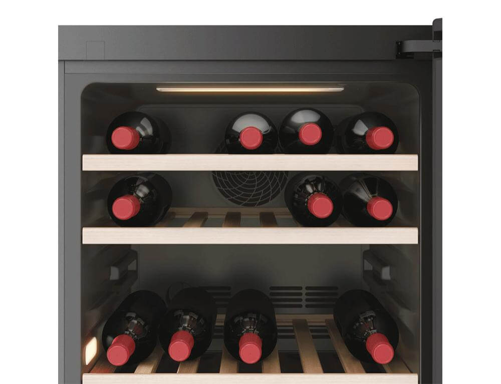 Σύστημα φωτισμού 3D LED που σας επιτρέπει να βλέπετε τέλεια το εσωτερικό. Ολόκληρο το ψυγείο κρασιού φωτίζεται από την κορυφή και τα πλαϊνά, γεγονός που δημιουργεί ένα ιδιαίτερο αποτέλεσμα.