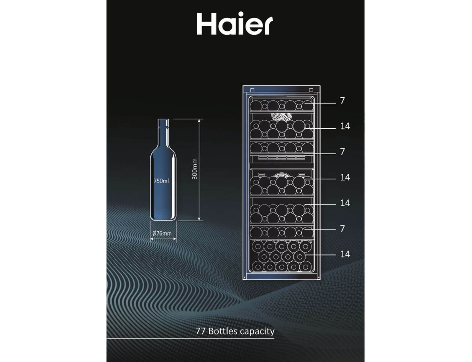 Συντηρητής κρασιού Haier Wine Bank 50 Series 7 HWS77GDAU1 με ενεργειακή κλάση G, WiFi και χωρητικότητα 77 φιάλες