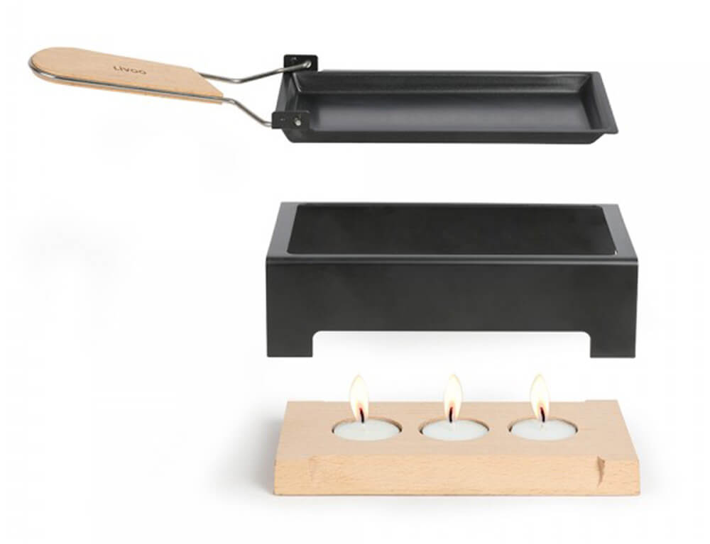 Σκεύος ψησίματος τυριού με κεριά Livoo MEN395 με 3 κεριά και επιφάνεια μαγειρέματος 18,5 x 9 cm