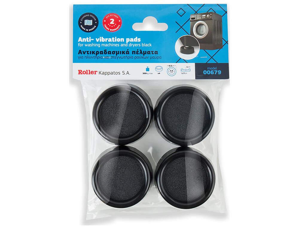 Αντικραδασμικά πέλματα Πλυντηρίου/Στεγνωτηρίου Roller 00679 από πλαστικό - 4τμχ - Μαύρα