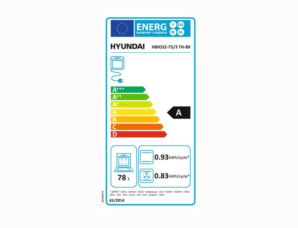 Εντοιχιζόμενος φούρνος Hyundai HBIO22-75/3 TH-BX με χωρητικότητα 78 λίτρα, ενεργειακή κλάση Α.