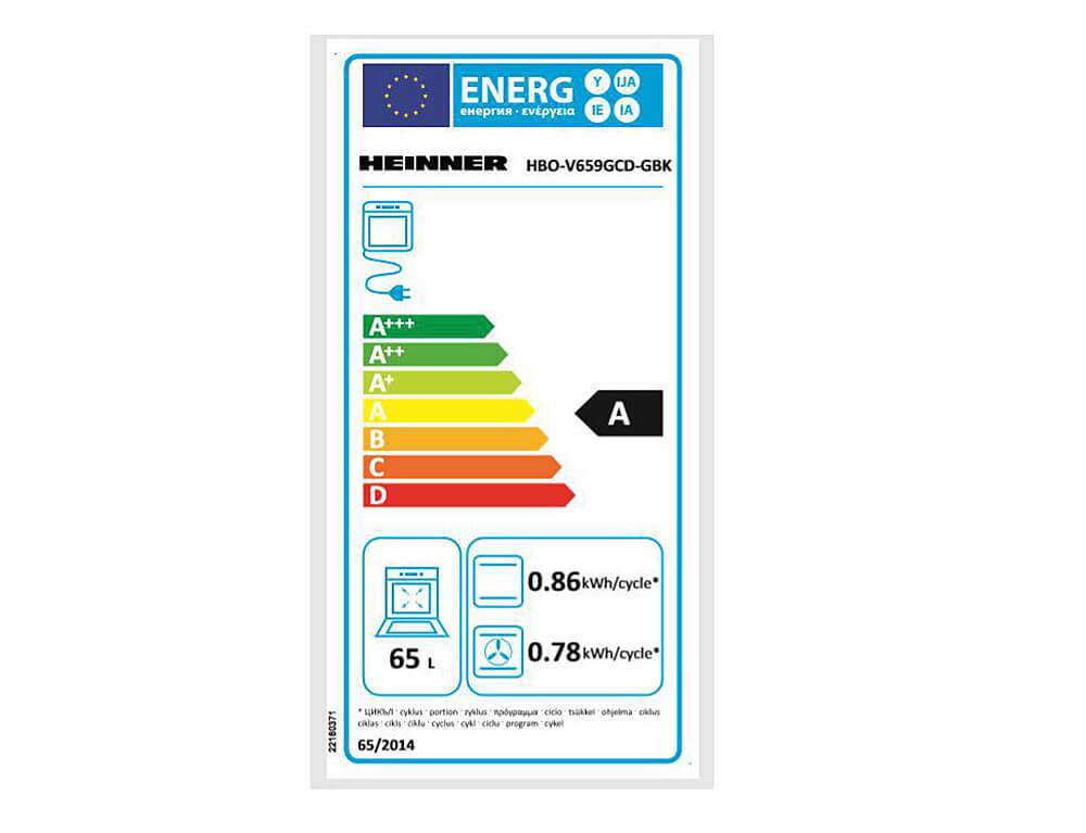 Εντοιχιζόμενος φούρνος Heinner HBO-V659GCD-GBK Χωρίς Εστίες, με χωρητικότητα 65L και ενεργειακή κλάση A
