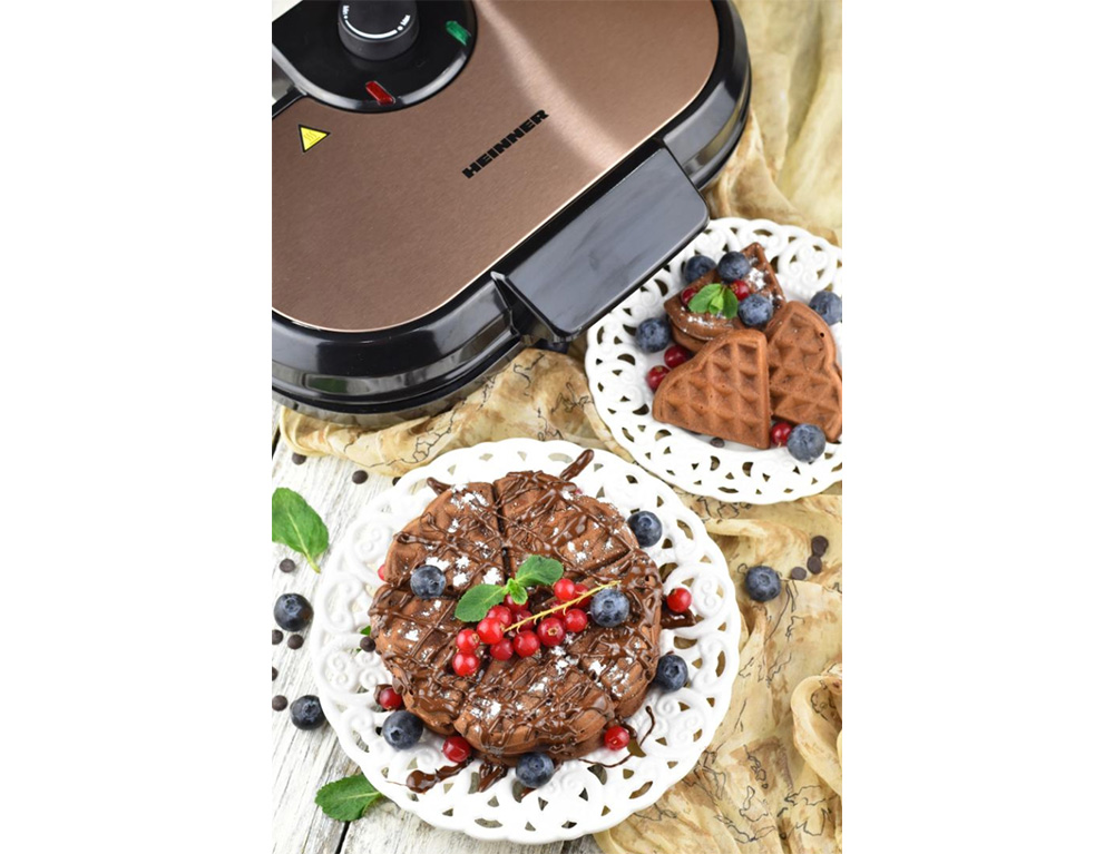 Βαφλιέρα Heinner Copper Crown HWF-1000CR με ισχύ 1000W, Αντικολλητικές πλάκες και 2 θέσεις ψησίματος