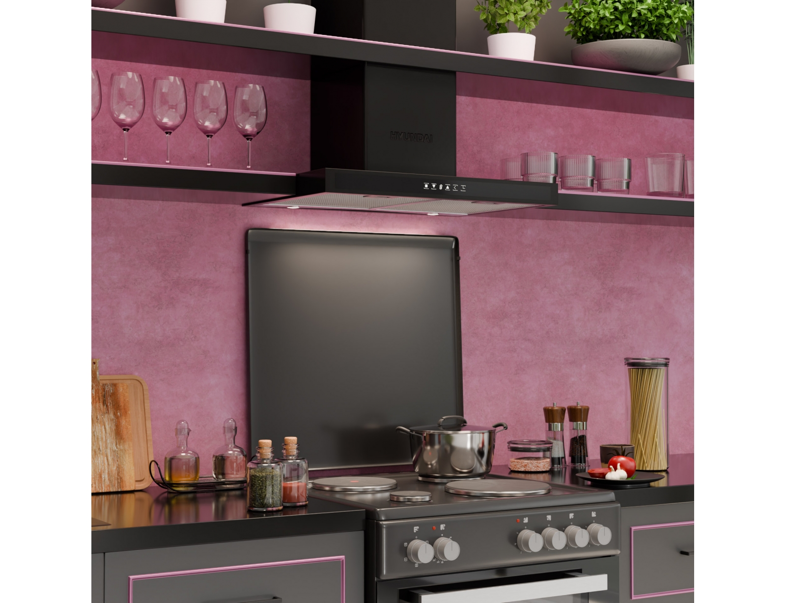 Απορροφητήρας Hyundai HHD25-T9662TBL/T με πλάτος 60cm και απορροφητική ισχύ 1000 m³/h - Black Glass Panel