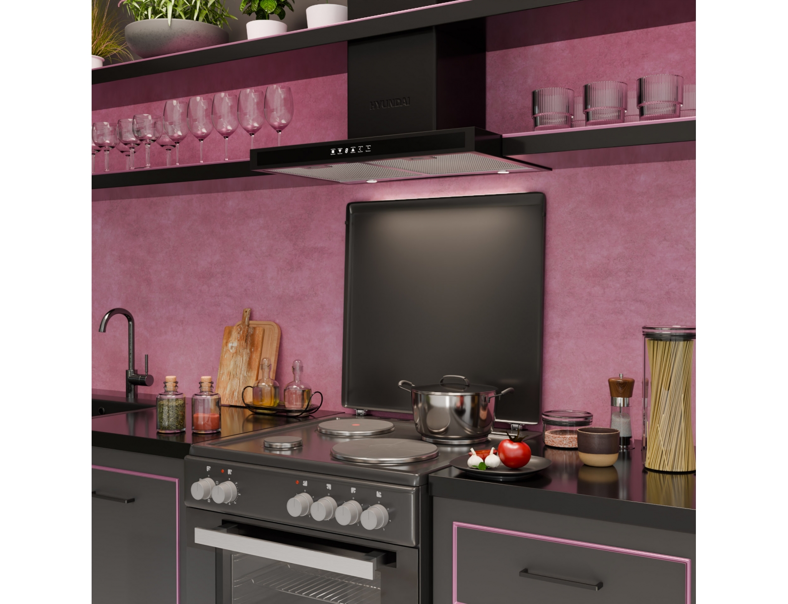 Απορροφητήρας Hyundai HHD24-GL4661B με πλάτος 60cm και απορροφητική ισχύ 650 m³/h - Black