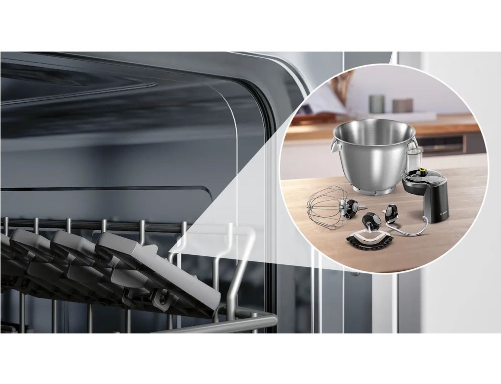 Με τη βοήθεια των εξαρτημάτων - ρυθμιζόμενο σύρμα από ανοξείδωτο χάλυβα, γάντζος και χυτό κουπί αλουμινίου - ετοιμάζετε, ανακατεύετε και ζυμώνετε τα υλικά σε λίγα δευτερόλεπτα, μειώνοντας σημαντικά τον χρόνο μαγειρέματος.