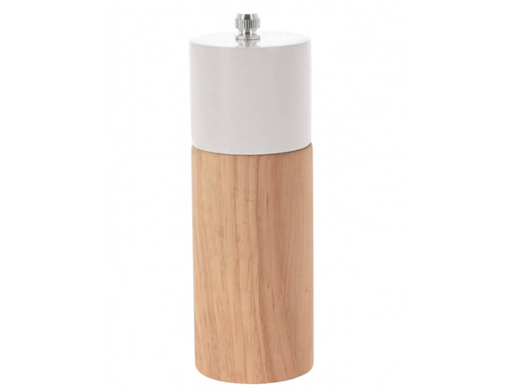 Χειροκίνητος μύλος για άλεσμα πιπεριού, αλατιού ή άλλων μπαχαρικών. Στερεά κατασκευασμένο με υλικά υψηλής ποιότητας. Ο κεραμικός μηχανισμός λείανσης εγγυάται το τρίψιμο ακόμη και των πιο σκληρών κόκκων. Ο μύλος θα φαίνεται όμορφος σε κάθε κουζίνα και στο τραπέζι. Μοντέρνος συνδυασμός ξύλου και λευκού. Το τρίψιμο των μπαχαρικών λίγο πριν τα προσθέσετε στα πιάτα θα σας επιτρέψει να εξαγάγετε το φρέσκο άρωμα. Κατασκευάζεται σύμφωνα με τα ευρωπαϊκά πρότυπα.