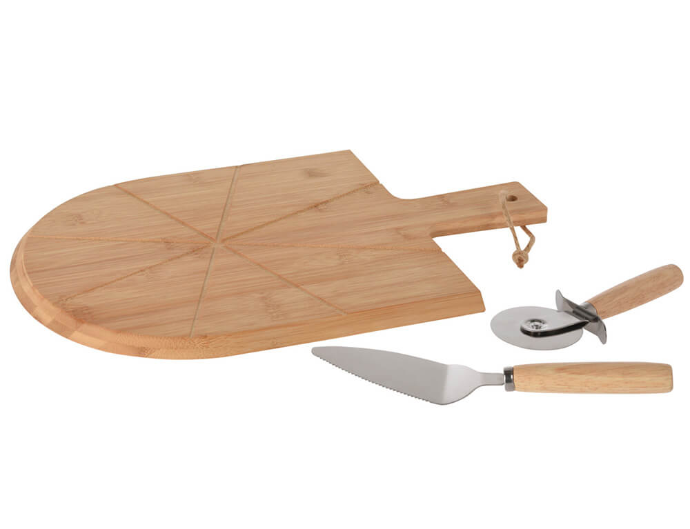 Σετ Επιφάνεια Κοπής, Κόπτης πίτσας & Σπάτουλα σερβιρίσματος Excellent Houseware από Ξύλο Bamboo, με διαστάσεις 43x30x1.5cm - 3 τεμάχια