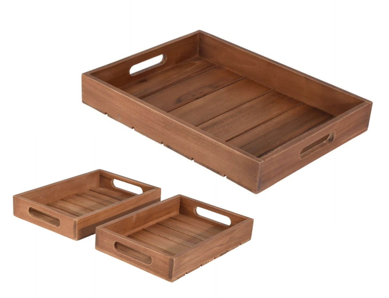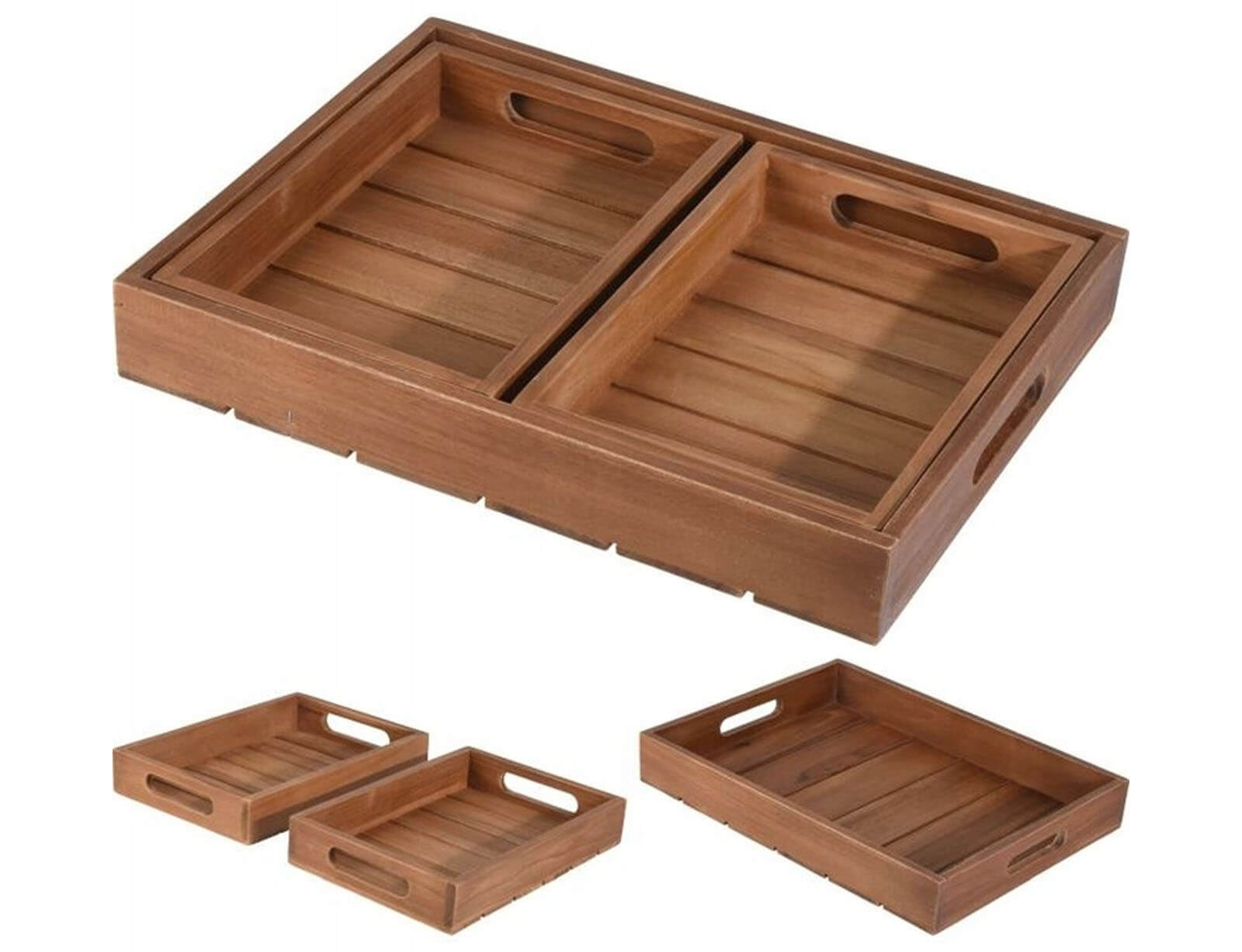 Σετ Δίσκοι Σερβιρίσματος από Ξύλο Τeak, με λαβές και διαστάσεις 39x29x5.5cm και 26x18x4.5cm - 3 τεμάχια