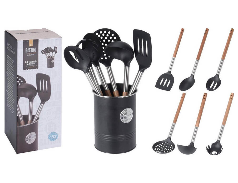 Ανακαλύψτε τι είναι το ξένοιαστο μαγείρεμα με το σετ κουζινικών 7 τεμαχίων. Αυτό το σετ έχει όλα όσα χρειάζεστε και στην εύχρηστη θήκη είναι όλα σε κοντινή απόσταση και μπορείτε να μαγειρέψετε τα αγαπημένα σας πιάτα χωρίς άγχος. Μπορείτε να χρησιμοποιήσετε αμέσως αυτό το σετ για ανάμειξη, ανάδευση και ψήσιμο. Κάθε κομμάτι αυτού του σετ μαγειρικών σκευών έχει τρύπες για εύκολη ανάρτηση.