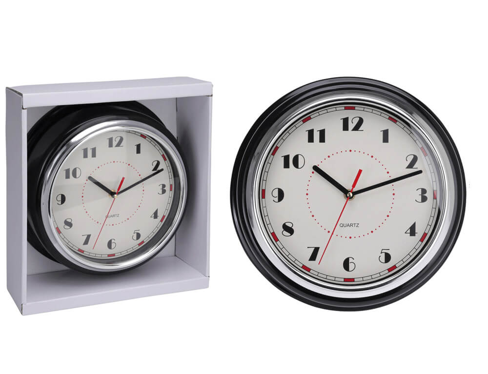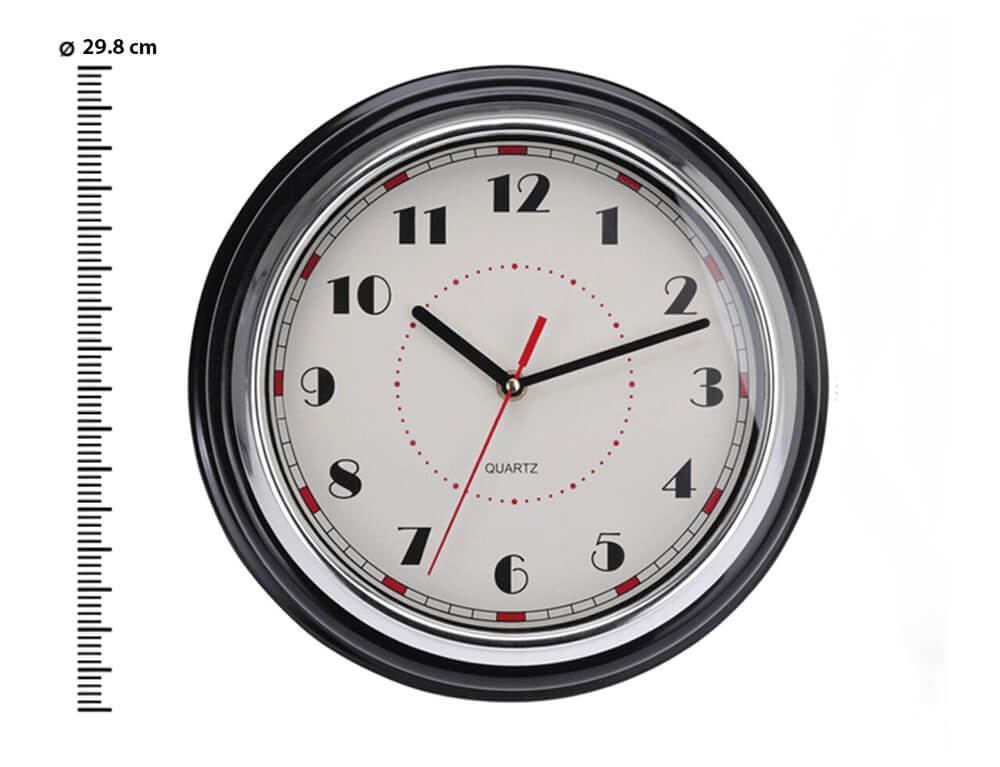 Ρολόι τοίχου από pp και γυαλί, διαστάσεων d298x97mm, συσκευασμένο σε χρωματιστό κουτί, με βίδες στο πίσω μέρος, λειτουργεί με 1x aa μπαταρία (δεν περιλαμβάνεται).