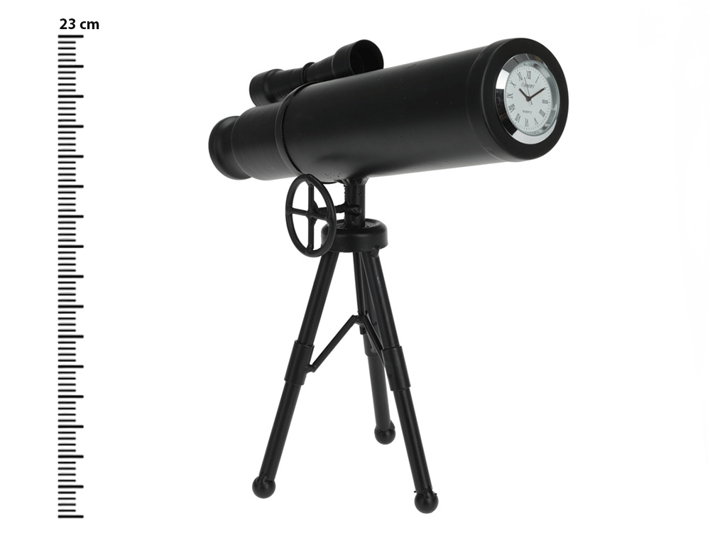 Ρολόι σε design τηλεσκόπιο, μεταλλικό, 220x120x230mm, μαύρο ματ. Λειτουργεί με LR66/AG4 μπαταρία (δεν περιλαμβάνεται). Κομψό, όμορφο και ξεχωριστό, θα δώσει ιδιαίτερη σχεδιαστική πινελιά στον χώρο σας.