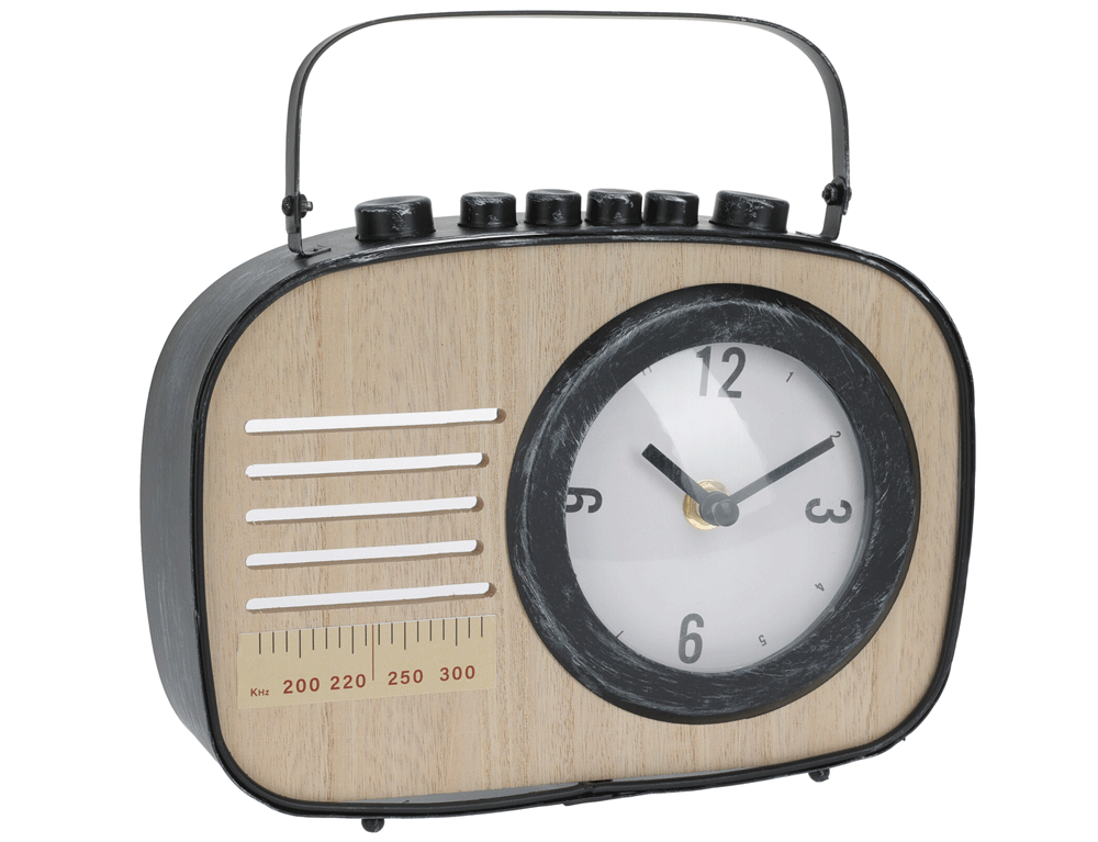 Eπιτραπέζιο ρολόι radio model C37568650 Μεταλλικό με mdf, 22x6x21cm. Λειτουργεί με 1x ΑΑ μπαταρία (δεν περιλαμβάνεται). Κομψό, όμορφο και ξεχωριστό, θα δώσει ιδιαίτερη σχεδιαστική πινελιά στον χώρο σας.