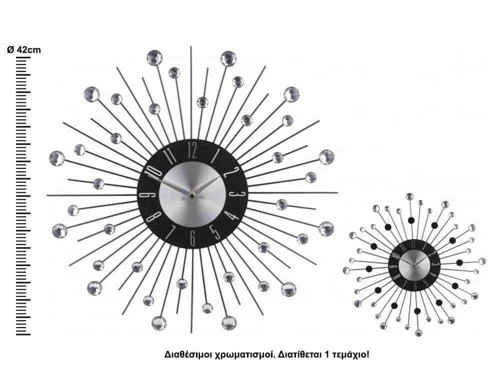 Ρολόι τοίχου HZ1901550 Μεταλλικό με καντράν αλουμινίου και 36 ακρυλικές πέτρες, 42x42x4 cm σε 2 διαθέσιμα σχέδια.