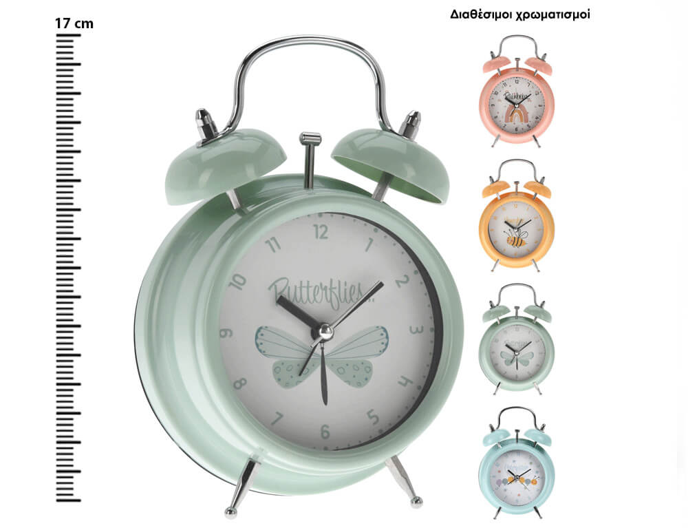 Επιτραπέζιο ρολόι Alarm Kids deco HZ1992050 Γυαλιστερό φινίρισμα, 11.8x5.7x17cm, σε 4 επιλογές σχεδίου - χρώματος, pink-rainbow/gree-butterfly/blue-caterpilla/yellow-bee.