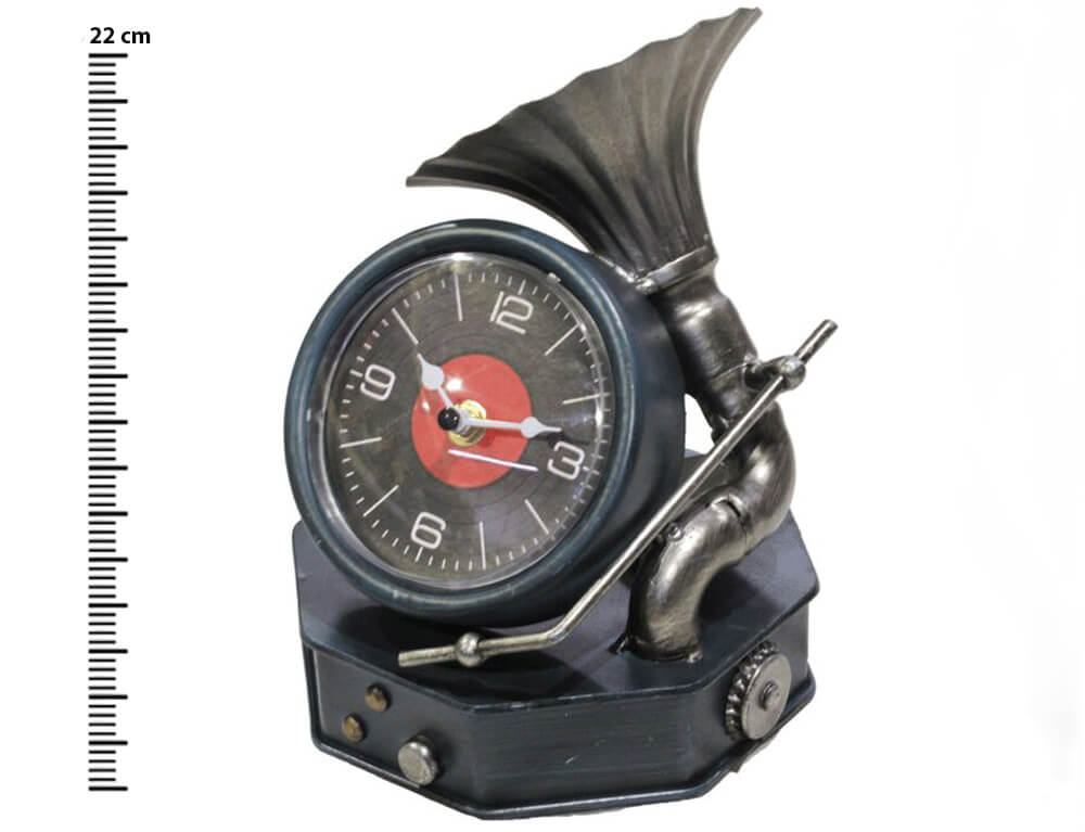 Επιτραπέζιο ρολόι σε design γραμμόφωνο Y36300130 Σιδερένιο, 16x16x22cm, Black antique. Λειτουργεί με 1x AA μπαταρία (δεν περιλαμβάνεται). Κομψό, όμορφο και ξεχωριστό, θα δώσει ιδιαίτερη σχεδιαστική πινελιά στον χώρο σας.