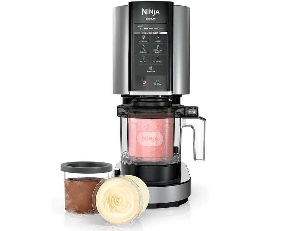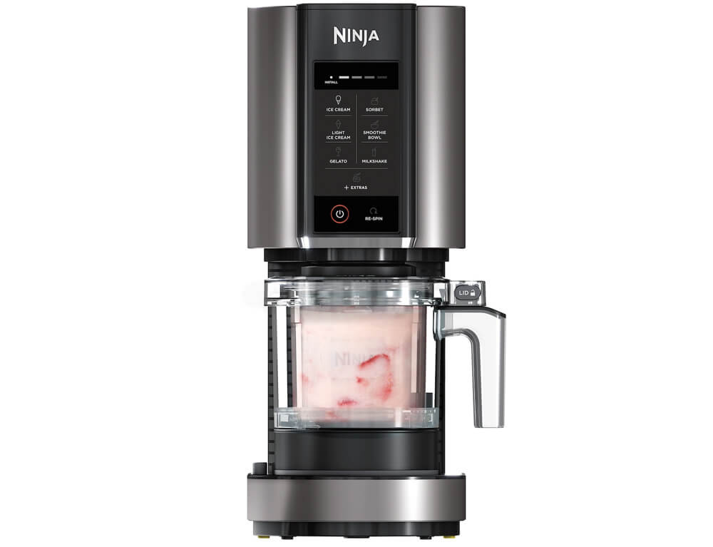 Με την παγωτομηχανή Ninja δεν φτιάχνετε μόνο επιδόρπια, αλλά μπορείτε να φτιάξετε πρωινό όπως smoothie bowl, σορμπέ φρούτων. Στην παγωτομηχανή υπάρχουν 7 λειτουργίες για την προετοιμασία όλων των ειδών νόστιμων πιάτων. Η παγωτομηχανή Ninja λειτουργεί πολύ εύκολα. Γεμίζουμε τους ειδικούς δίσκους με υλικά και αφήνουμε να παγώσουν για περίπου 24 ώρες. Τοποθετήστε το δοχείο στον εξωτερικό δίσκο, συνδέστε τις λεπίδες και το καπάκι και επιλέξτε το κατάλληλο πρόγραμμα. Με τα μαχαίρια, το Ninja δημιουργεί ένα νόστιμο κρεμώδες και απαλό σορμπέ/παγωτό με το πάτημα ενός κουμπιού. Φυσικά, υπάρχει η δυνατότητα να παγώσει μετά.