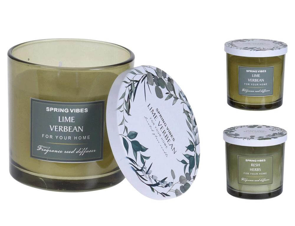 Αρωματικό Κερί Barn CC5062280 Σε γυάλινο δοχείο με καπάκι Zinc, 10 x 10 cm, 270γρ, σε 3 επιλογές σχεδίου και αρώματος dark green/lime verbean, green/fresh herbs, yellow/amber vanilla.