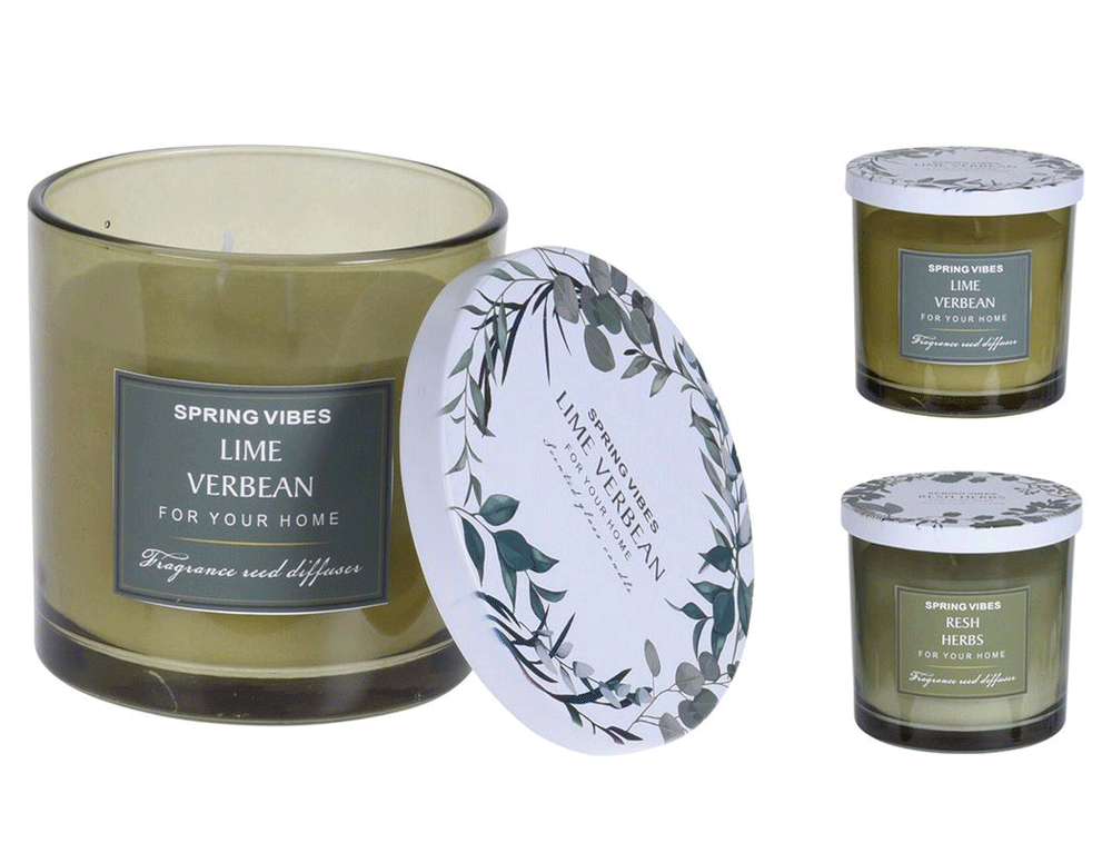 Αρωματικό Κερί Mellow CC5071360 Σε γυάλινο δοχείο 11.5 x 8 cm, σε 3 επιλογές σχεδίου και αρώματος yellow/orange blossom, green/white rose jasmine, brown/freshcotton.