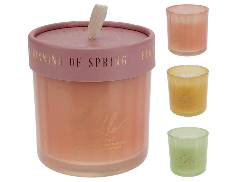 Αρωματικό Κερί CC5072540 Σε χρωματιστό γυάλινο δοχείο με silk printing, 10 x 10 cm, Σε 3 επιλογές χρώματος και αρώματος, orange blossom/peony petal/fresh herbs.