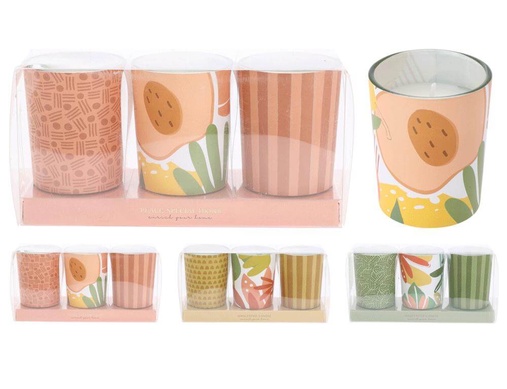 Σετ 3 Κεριά CC5073360 Σε γυάλινο Deco δοχείο 16 x 5 x 6 cm, σε 3 επιλογές σχεδίου.