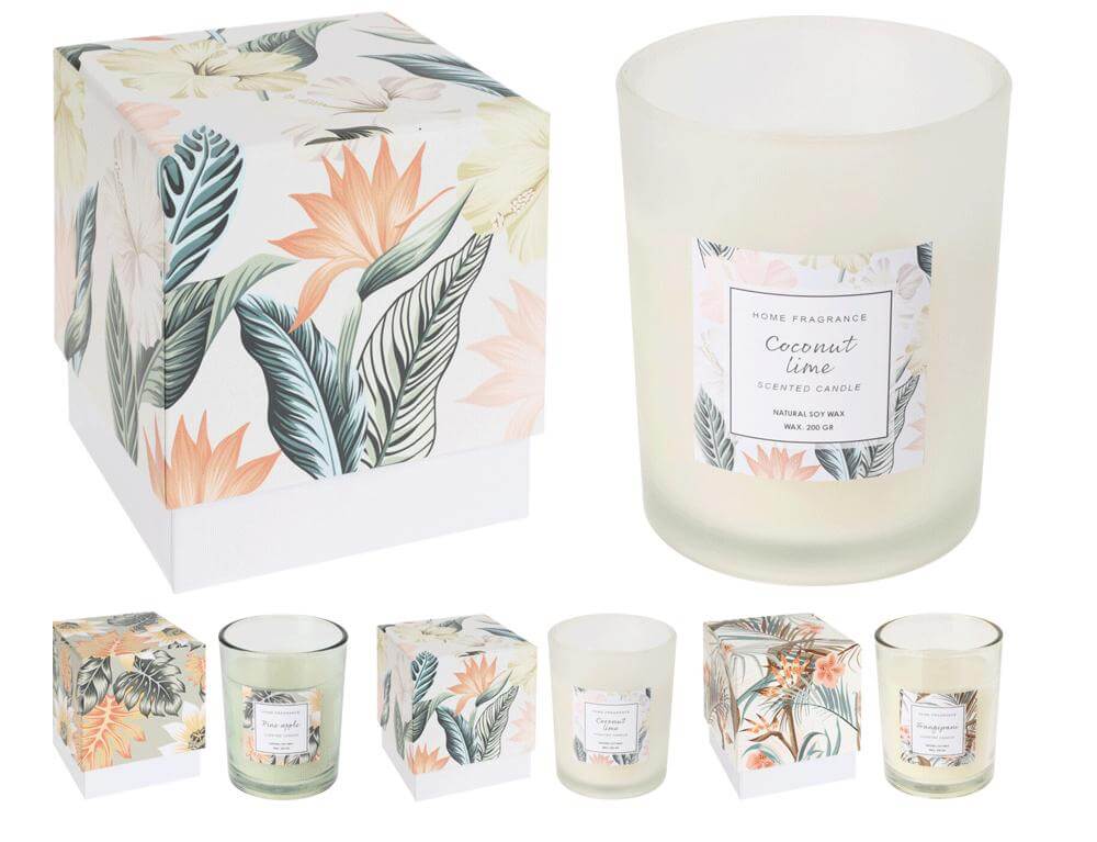 Αρωματικό Κερί CC5073580 Σε γυάλινο δοχείο 9.5 x 10.5 cm, σε 3 επιλογές σχεδίου και αρώματος, white/cocomint, khaki/frangipani, green/pineapple.