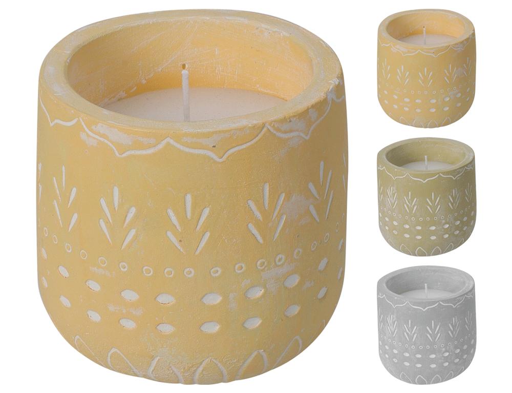 Κερί Mellow HZ1953750 Σε τσιμεντένιο δοχείο με σχέδια, 10 x 10 cm, σε 3 επιλογές χρώματος, grey, yellow, green.
